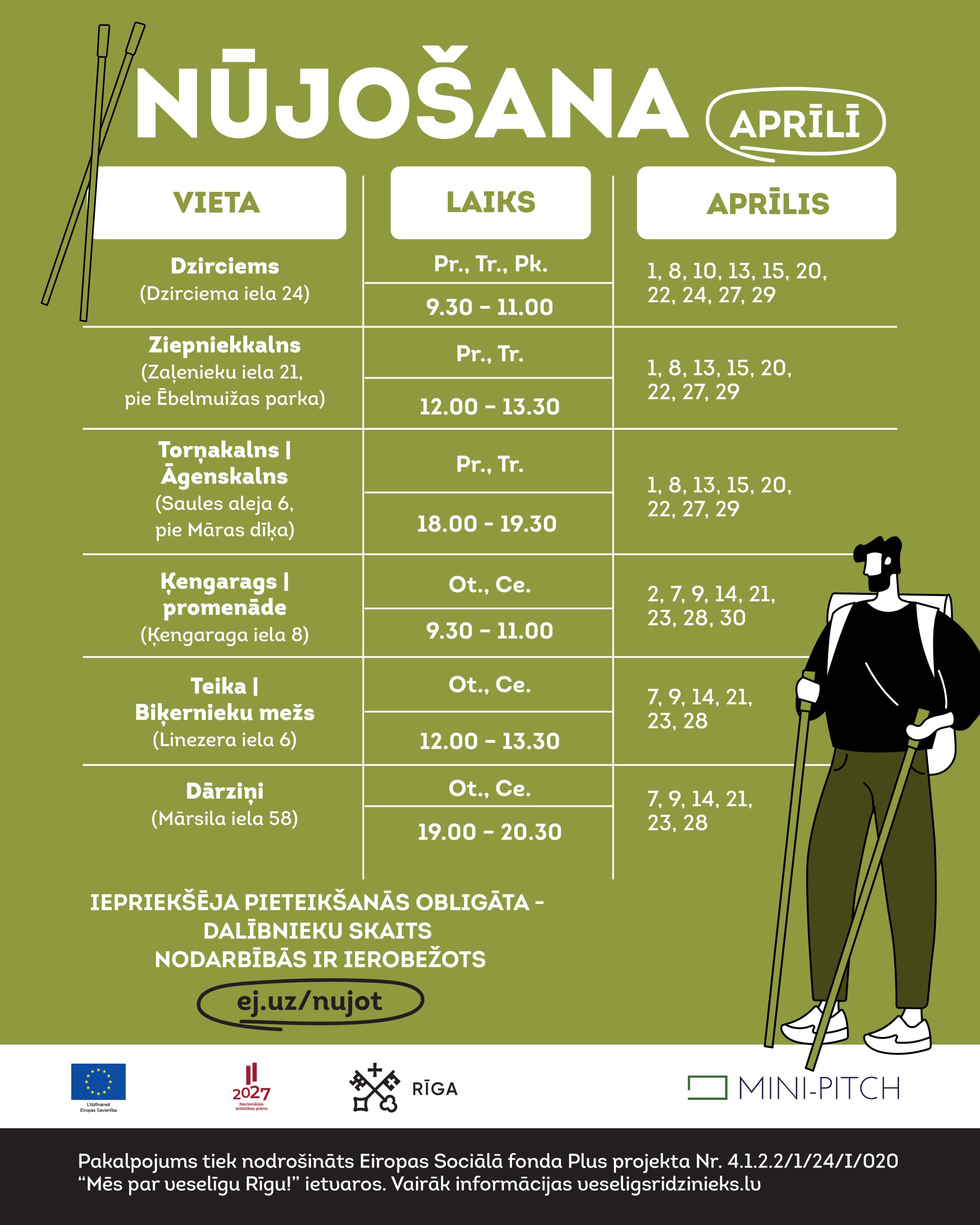 Ir laiks jauniem un veselīgiem ieradumiem! Nāc viens vai kopā ar draugiem, ar pieredzi vai bez tās, ar savām nūjām vai bez. Svarīgākais – vienkārši atnāc!